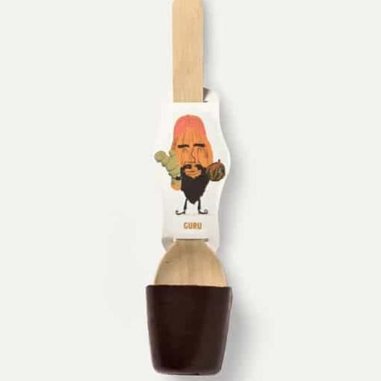 チョッコラータ イン タッツァ グル(生姜とナツメグ)は、木製のスプーンにチョコがくっついた、ホットミルクの中でクルクル回し溶かして飲むホットチョコレートです。